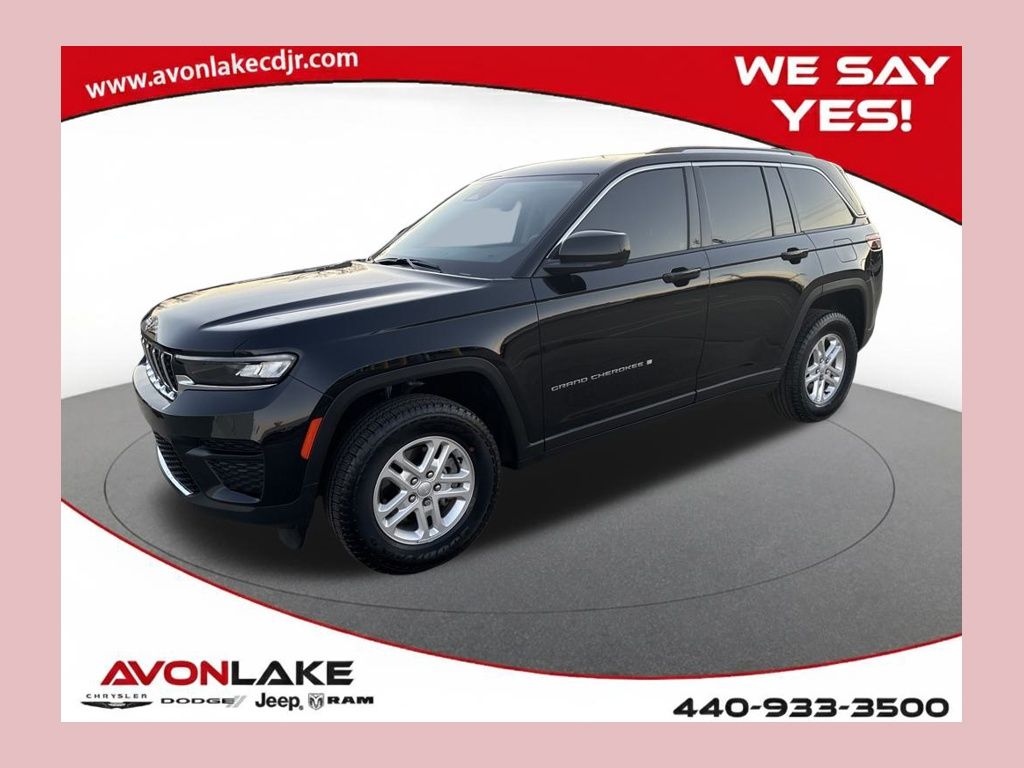 This 2023 Jeep Grand Cherokee Laredo is a used vehicle with 25,804 mi. It is equipped with 8-Speed Automatic 4WD and runs on Gasoline. The vehicle has a Diamond Black Crystal Pearlcoat exterior and Black interior. This specific vehicle (VIN: 1C4RJHAG5PC644570) is currently available for sale in Avon Lake, Ohio (ZIP 44012), Lorain County and is offered by Avon Lake CDJR for immediate purchase.