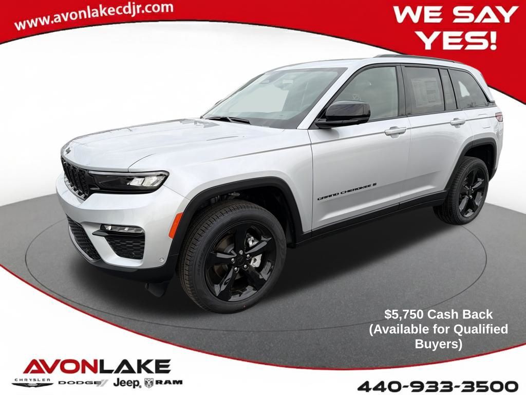 This 2025 Jeep Grand Cherokee Limited is a new vehicle with 15 mi (delivery miles only). It is equipped with 8-Speed Automatic 4WD and runs on Gasoline. The vehicle has a Silver Zynith exterior and Global Black interior. This specific vehicle (VIN: 1C4RJHBG3SC368607) is currently available for sale in Avon Lake, Ohio (ZIP 44012), Lorain County and is offered by Avon Lake CDJR for immediate purchase.