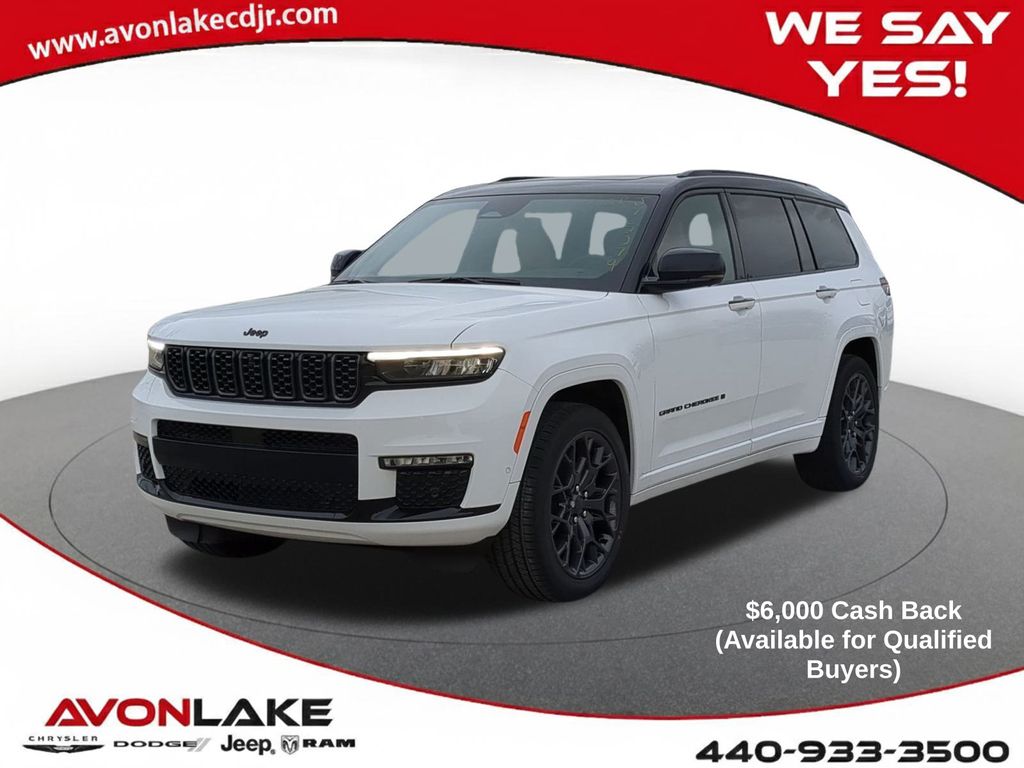 This 2025 Jeep Grand Cherokee L Summit is a new vehicle with 14 mi (delivery miles only). It is equipped with 8-Speed Automatic 4WD and runs on Gasoline. The vehicle has a Bright White Clearcoat exterior and Tupelo/Black interior. This specific vehicle (VIN: 1C4RJKEG5S8762279) is currently available for sale in Avon Lake, Ohio (ZIP 44012), Lorain County and is offered by Avon Lake CDJR for immediate purchase.