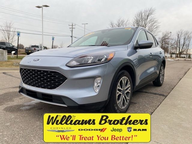 28/34 City/Highway MPG Odometer is 8006 miles below market average!2022 Ford Escape SEL Iced Blue Silver Metallic SEL FWD 8-Speed Automatic 1.5L EcoBoostEquipment Group 301A, Ford Co-Pilot360 Assist+ (Intelligent Adaptive Cruise Control w/Stop-and-Go, Speed Sign Recognition, and Voice-Activated Touchscreen Navigation System), Memory Package, Technology Package (10-Way Power Driver's Seat, Hands-Free Foot-Activated Liftgate, Instrument Panel w/6.5" Digital Screen, Radio: B&O Sound System by Bang & Olufsen, and Wireless Charging Pad), 18" Machined-Face Aluminum Wheels, 3.81 Axle Ratio, 4-Wheel Disc Brakes, 6 Speakers, ABS brakes, Air Conditioning, Alloy wheels, AM/FM radio: SiriusXM, AM/FM Stereo, Auto High-beam Headlights, Automatic temperature control, Brake assist, Bumpers: body-color, Cargo Mat, Compass, Delay-off headlights, Driver door bin, Driver vanity mirror, Dual front impact airbags, Dual front side impact airbags, Electronic Stability Control, Emergency communication system: SYNC 3 911 Assist, Exterior Parking Camera Rear, FordPass Connect, Four wheel independent suspension, Front & Rear Floor Liners w/Carpet Mats, Front anti-roll bar, Front Bucket Seats, Front Center Armrest, Front dual zone A/C, Front fog lights, Front reading lights, Fully automatic headlights, Heated ActiveX Trimmed Front Sport Contour Bucket Seats, Heated door mirrors, Heated front seats, Heated steering wheel, Illuminated entry, Knee airbag, Low tire pressure warning, Occupant sensing airbag, Outside temperature display, Overhead airbag, Overhead console, Panic alarm, Passenger door bin, Passenger vanity mirror, Power door mirrors, Power driver seat, Power Liftgate, Power steering, Power windows, Radio data system, Rear anti-roll bar, Rear reading lights, Rear seat center armrest, Rear window defroster, Rear window wiper, Remote keyless entry, Speed control, Speed-sensing steering, Speed-Sensitive Wipers, Split folding rear seat, Spoiler, Steering wheel mounted audio controls, SYNC 3 Communications & Entertainment System, Tachometer, Telescoping steering wheel, Tilt steering wheel, Traction control, Trip computer, and Variably intermittent wipers.