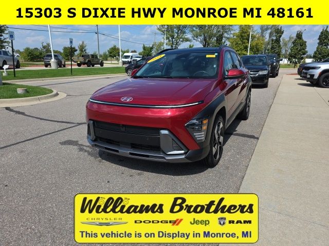 This 2024 Hyundai Kona Limited is a used vehicle with 50,712 mi. It is equipped with 8-Speed Automatic AWD and runs on Gasoline. The vehicle has a Red Metallic exterior and Gray interior. This specific vehicle (VIN: KM8HECA30RU087849) is currently available for sale in Dundee, Michigan (ZIP 48131) and is offered by Williams Brothers Dodge Chrysler Jeep Ram of Dundee for immediate purchase.