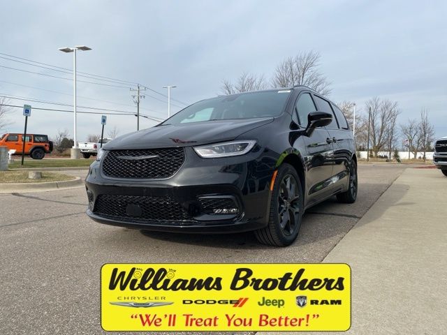 Dealer Discount of $5,985 off MSRP 19/28 City/Highway MPGPriced below KBB Fair Purchase Price! 19/28 City/Highway MPG Diamond Black Crystal Pearlcoat 2026 Chrysler Pacifica Select FWD 9-Speed 948TE Automatic 3.6L V6 24V VVTQuick Order Package 27L, S Appearance Package (Anodized Ink Badging, Black Day Light Opening Moldings, Black Stow 'N Place Roof Rack, Caprice Leatherette with S Logo, Piano Black Interior Accents, Premium Fascia Upper/Lower Grille with Black Surround, Premium Rear Fascia Black, S Badge, and Wheels: 20" x 7.5" S-Model Aluminum Design 1), 10.1" Touchscreen Display, 17" x 7.0" Aluminum Wheels, 3.25 Axle Ratio, 3rd row seats: split-bench, 4-Wheel Disc Brakes, 4G LTE Wi-Fi Hot Spot, 6 Speakers, 8-Passenger Seating, ABS brakes, Air Conditioning, Alloy wheels, AM/FM radio: SiriusXM, Apple CarPlay, Apple CarPlay/Android Auto, Auto-dimming Rear-View mirror, Automatic temperature control, Black Seats, Brake assist, Bumpers: body-color, Caprice Leatherette Bucket Seats, Compass, Connectivity - US/Canada, Delay-off headlights, Disassociated Touchscreen Display, Driver door bin, Driver vanity mirror, Driver's Seat Mounted Armrest, Dual front impact airbags, Dual front side impact airbags, Electronic Stability Control, Emergency communication system: Chrysler Connect, For Details, Visit DriveUconnect.com, Four wheel independent suspension, Front anti-roll bar, Front Bucket Seats, Front dual zone A/C, Front fog lights, Front reading lights, Fully automatic headlights, Garage door transmitter, Google Android Auto, GPS Antenna Input, Heated door mirrors, Heated front seats, Heated steering wheel, Illuminated entry, Integrated Active Noise Cancellation, Integrated Center Stack Radio, Knee airbag, Low tire pressure warning, Memory seat, Occupant sensing airbag, Outside temperature display, Overhead airbag, Overhead console, Panic alarm, ParkView Rear Back-Up Camera, Passenger door bin, Passenger seat mounted armrest, Passenger vanity mirror, Power door mirrors, Power driver seat, Power Liftgate, Power steering, Power windows, Radio data system, Radio: Uconnect 5 with 10.1" Display, Rain sensing wipers, Rear air conditioning, Rear reading lights, Rear window defroster, Rear window wiper, Reclining 3rd row seat, Remote keyless entry, Security system, Speed control, Split folding rear seat, Spoiler, Steering wheel mounted audio controls, Tachometer, Telescoping steering wheel, Tilt steering wheel, Touring Suspension, Traction control, Trip computer, Turn signal indicator mirrors, USB Host Flip, Variably intermittent wipers, and VoltmeteR. Price includes: $3500 - 2026 National Retail Bonus Cash . Exp. 03/02/2026
