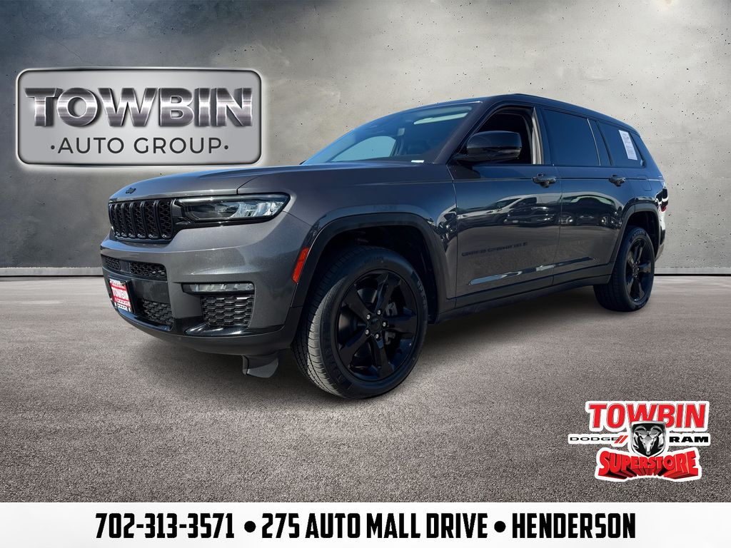 Welcome to Towbin Dodge, #1 Dodge dealer in the world! This isnt just any used car- it has been handpicked and thoroughly inspected to meet the high standards we are known for, From everyday budget options to SRT and Luxury models, weve got something for every lifestyle and price point. At Towbin we make used car buying easy, affordable, and exciting.2023 Jeep Grand Cherokee L LimitedClean CARFAX.Certified By Carfax - No Accidents, 3rd row seats: split-bench, AM/FM radio: SiriusXM with 360L, Audio memory, Automatic temperature control, Black Appearance Package, Brake assist, Capri Leatherette Seats, Dual front impact airbags, Dual front side impact airbags, Emergency communication system, Front anti-roll bar, Front dual zone A/C, Garage door transmitter, Gloss Black Exterior Accents, Heated door mirrors, Heated front seats, Heated rear seats, Heated steering wheel, Knee airbag, Memory seat, Molded In Color Black/Gloss Black Roof Rails, Navigation System, Normal Duty Suspension, Occupant sensing airbag, Overhead airbag, Power door mirrors, Power driver seat, Power Liftgate, Power passenger seat, Power windows, Quick Order Package 22E, Radio: Uconnect 5 Nav w/10.1" Display, Rear air conditioning, Reclining 3rd row seat, Remote keyless entry, Security system, Speed control, Split folding rear seat, Spoiler, Steering wheel mounted audio controls, Telescoping steering wheel, Tilt steering wheel, Traction control, Variably intermittent wipers, Wheels: 20" x 8.5" Gloss Black Painted Aluminum.Baltic Gray Metallic Clearcoat RWD 8-Speed Automatic 3.6L V6 24V VVTThanks for checking out this great vehicle. When looking to buy pre-owned, why not buy from the #1 Dodge dealer in Nevada? Give us a call or come see why everyone drives out saying, I got a great deal at Towbin Dodge!
