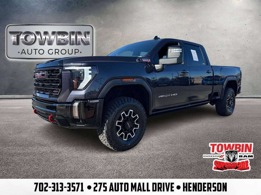 Welcome to Towbin Dodge, #1 Dodge dealer in the world! This isnt just any used car- it has been handpicked and thoroughly inspected to meet the high standards we are known for, From everyday budget options to SRT and Luxury models, weve got something for every lifestyle and price point. At Towbin we make used car buying easy, affordable, and exciting.2024 GMC Sierra 2500HD AT4XCARFAX One-Owner. Clean CARFAX.Certified By Carfax - No Accidents, Certified By Carfax - One Owner, 10-Speed Automatic, 4WD, Obsidian Rush Leather, 12 Speakers, 120-Volt Bed Mounted Power Outlet, 120-Volt Instrument Panel Power Outlet, 16-Way Power Driver Seat Adjuster w/Lumbar, 16-Way Power Passenger Seat Adjuster w/Lumbar, 2 Charge-Only Rear USB Ports, 2 Charge/Data USB Ports Inside Center Console, 2 USB Ports, 2-Speed Active Transfer Case, Apple CarPlay/Android Auto, Auto-dimming door mirrors, Automatic Emergency Braking, Automatic temperature control, Bed View Camera w/2 Trailer Camera Provisions, Bose Premium Series 12-Speaker System, Brake assist, Deep-Tinted Glass, Driver Memory, Dual front impact airbags, Dual front side impact airbags, Electric Rear-Window Defogger, Electronic Stability Control, Emergency communication system: OnStar and GMC connected services capable, Floor-Mounted Center Console, Following Distance Indicator, Forward Collision Alert, Front dual zone A/C, Front Pedestrian Braking, Front Prem Floor Liners w/Removable Carpet Insert, Front Rain-Sensing Wipers, Gloss Black Header Grille & Grille Insert Bars, GMC Connected Access Capable, GMC MultiPro Tailgate Step Lights (LPO), Gooseneck/5th Wheel Prep Package, HD Surround Vision, Heads-Up Display, Heated 2nd Row Outboard Seats, Heated door mirrors, Heated Driver & Front Outboard Passenger Seats, Heated front seats, Heated steering wheel, Hill Descent Control, Hitch Guidance w/Hitch View, Inside Rearview Auto-Dimming Rear Camera Mirror, Integrated Trailer Brake Controller, IntelliBeam Automatic High Beam On/Off, Keyless Open & Start, Lane Departure Warning System, LED Cargo Area Lighting, LED Smoked Amber Roof Marker Lamps, Manual Tilt-Wheel/Telescoping Steering Column, Memory seat, Multicolor 15" Diagonal Head-Up Display, Occupant sensing airbag, Off-Road Suspension, OnStar & GMC Connected Services Capable, Overhead airbag, Power driver seat, Power Front Passenger Windows w/Express Up/Down, Power Sliding Rear Window w/Defogger, Power Sunroof, Power windows, Preferred Equipment Group 4SG, Premium audio system: Premium GMC Infotainment System, Push Button Start, Rear Cross Traffic Alert, Rear Prem Floor Liners w/Removable Carpet Insert, Rear Wheelhouse Liners, Remote Vehicle Starter System, Safety Alert Seat, SiriusXM w/360L, Speed control, Split folding rear seat, Spray-On Bedliner w/AT4 Logo, Steering Wheel Audio Controls, Telescoping steering wheel, Trailer Cam Provisions & Trailer Viewing Software, Trailer Side Blind Zone Alert, Trailer Tire Pressure Monitor Sensors, Trip computer, Ultrasonic Front & Rear Park Assist, Unauthorized Entry Theft-Deterrent System, Universal Home Remote, Variably intermittent wipers, Ventilated Driver & Front Passenger Seats, Wheels: 18" Machined Alum w/High Gloss Blk Accents, Wireless Charging, Wireless Phone Projection.Titanium Rush Metallic 4WD 10-Speed Automatic Duramax 6.6L V8 TurbodieselThanks for checking out this great vehicle. When looking to buy pre-owned, why not buy from the #1 Dodge dealer in Nevada? Give us a call or come see why everyone drives out saying, I got a great deal at Towbin Dodge!