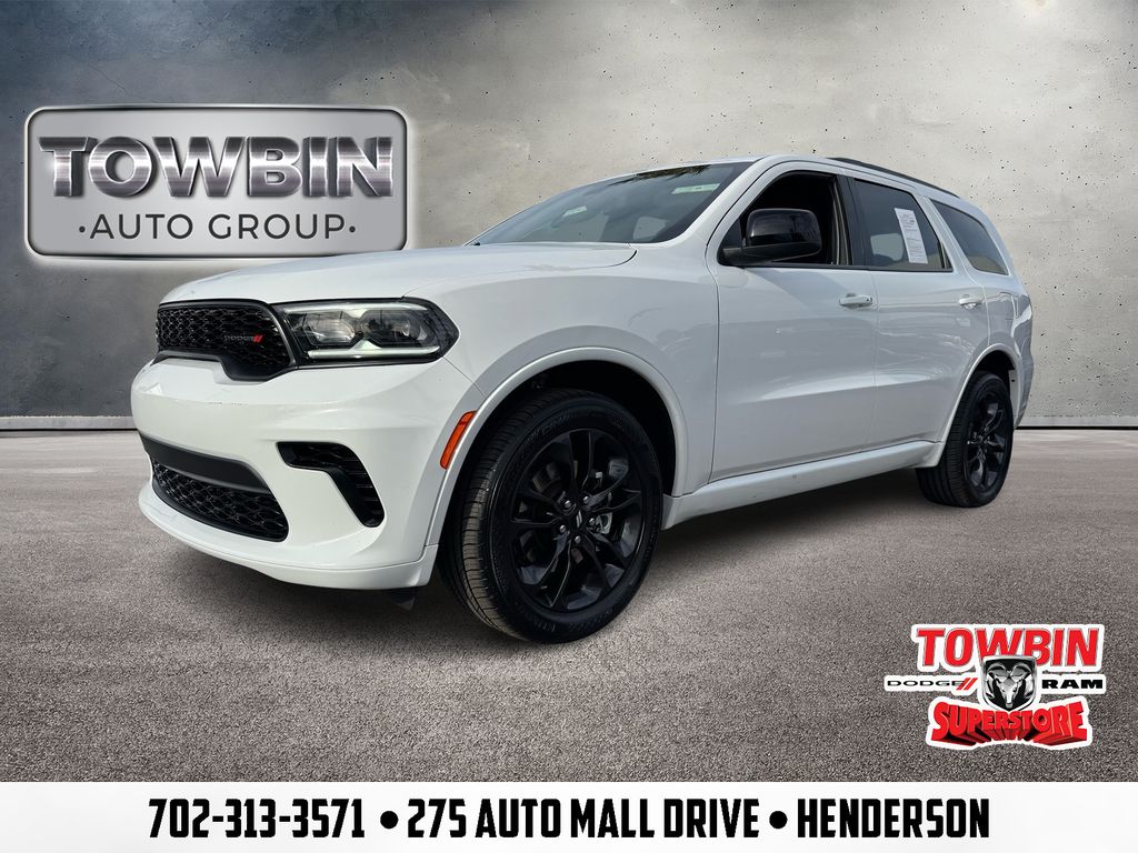 Welcome to Towbin Dodge, #1 Dodge dealer in the world! This isnt just any used car- it has been handpicked and thoroughly inspected to meet the high standards we are known for, From everyday budget options to SRT and Luxury models, weve got something for every lifestyle and price point. At Towbin we make used car buying easy, affordable, and exciting.2025 Dodge Durango GTClean CARFAX.Certified By Carfax - No Accidents, Certified By Carfax - One Owner, Remainder Of Factory Warranty Still Applies, AWD, 7 & 4 Pin Wiring Harness, Apple CarPlay/Android Auto, Auto-dimming Rear-View mirror, Automatic temperature control, Black Roof Rails, Blacktop Package, Blind Spot w/Trailer Detection, Brake assist, Class IV Receiver Hitch, Driver vanity mirror, Dual front impact airbags, Dual front side impact airbags, Electronic Stability Control, Emergency communication system: Dodge Connect, Exterior Mirrors w/Heating Element, Front dual zone A/C, Garage door transmitter, Gloss Black Badges, Gloss Black Exterior Mirrors, GT Gloss Black Badging, Heated door mirrors, Heated front seats, Heated steering wheel, Heavy-Duty Engine Cooling, Integrated Roof Rail Crossbars, Knee airbag, Navigation System, Occupant sensing airbag, Overhead airbag, Panic alarm, ParkView Rear Back-Up Camera, Power door mirrors, Power driver seat, Power Liftgate, Power windows, Quick Order Package 2BD GT, Radio: Uconnect 5 Nav w/10.1" Display, Rear air conditioning, Rear anti-roll bar, Rear Load Leveling Suspension, Remote keyless entry, Satin Black Dodge Tail Lamp Badge, Speed control, Speed-sensing steering, Speed-Sensitive Wipers, Spoiler, Steering wheel mounted audio controls, Telescoping steering wheel, Tilt steering wheel, Trailer Brake Control, Trailer Tow Group IV, Variably intermittent wipers, Wheels: 20" x 8.0" Black Noise Aluminum.White Knuckle Clearcoat AWD 8-Speed Automatic 3.6L V6 24V VVTThanks for checking out this great vehicle. When looking to buy pre-owned, why not buy from the #1 Dodge dealer in Nevada? Give us a call or come see why everyone drives out saying, I got a great deal at Towbin Dodge!