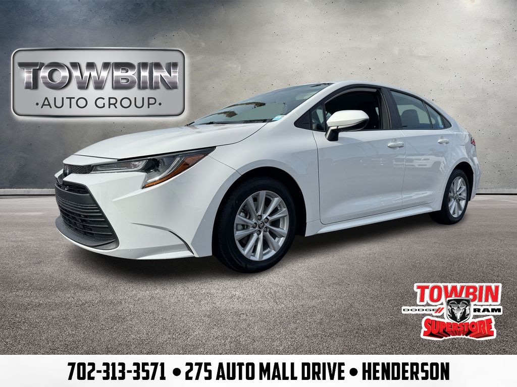 Welcome to Towbin Dodge, #1 Dodge dealer in the world! This isnt just any used car- it has been handpicked and thoroughly inspected to meet the high standards we are known for, From everyday budget options to SRT and Luxury models, weve got something for every lifestyle and price point. At Towbin we make used car buying easy, affordable, and exciting.2025 Toyota Corolla LEClean CARFAX.Certified By Carfax - No Accidents, Certified By Carfax - One Owner, Remainder Of Factory Warranty Still Applies, 16" Alloy Wheels, ABS brakes, Apple CarPlay/Android Auto, Automatic temperature control, Blind Spot Monitor, Brake assist, Color-Keyed Heated Power Outside Mirrors, Dual front impact airbags, Dual front side impact airbags, Electronic Stability Control, Emergency communication system: Safety Connect (up to 10-year trial subscription), Exterior Parking Camera Rear, Knee airbag, LE Premium Package, Occupant sensing airbag, Outside temperature display, Overhead airbag, Panic alarm, Power door mirrors, Power windows, Qi-Compatible Wireless Charger, Radio: 8" Toyota Audio Multimedia, Rear side impact airbag, Remote keyless entry, Smart Key System, Speed control, Split folding rear seat, Telescoping steering wheel, Tilt steering wheel.Ice Cap FWD CVT 2.0L I4 DOHC 16VThanks for checking out this great vehicle. When looking to buy pre-owned, why not buy from the #1 Dodge dealer in Nevada? Give us a call or come see why everyone drives out saying, I got a great deal at Towbin Dodge!