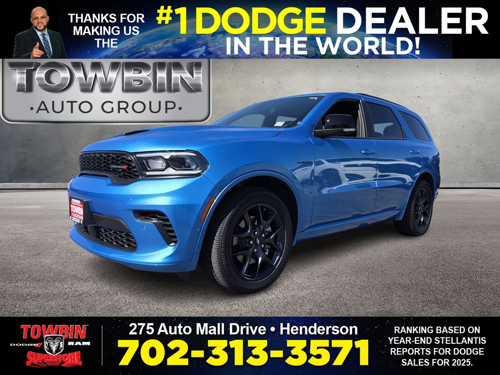 This 2026 Dodge Durango GT Plus HEMI V8 is a new vehicle with 243 mi (delivery miles only). It is equipped with 8-Speed Automatic AWD and runs on Gasoline. The vehicle has a B5 Blue exterior and Black interior. This specific vehicle (VIN: 1C4SDJCT6TC220190) is currently available for sale in Henderson, Nevada (ZIP 89014), Clark County and is offered by Towbin Alfa Romeo for immediate purchase.