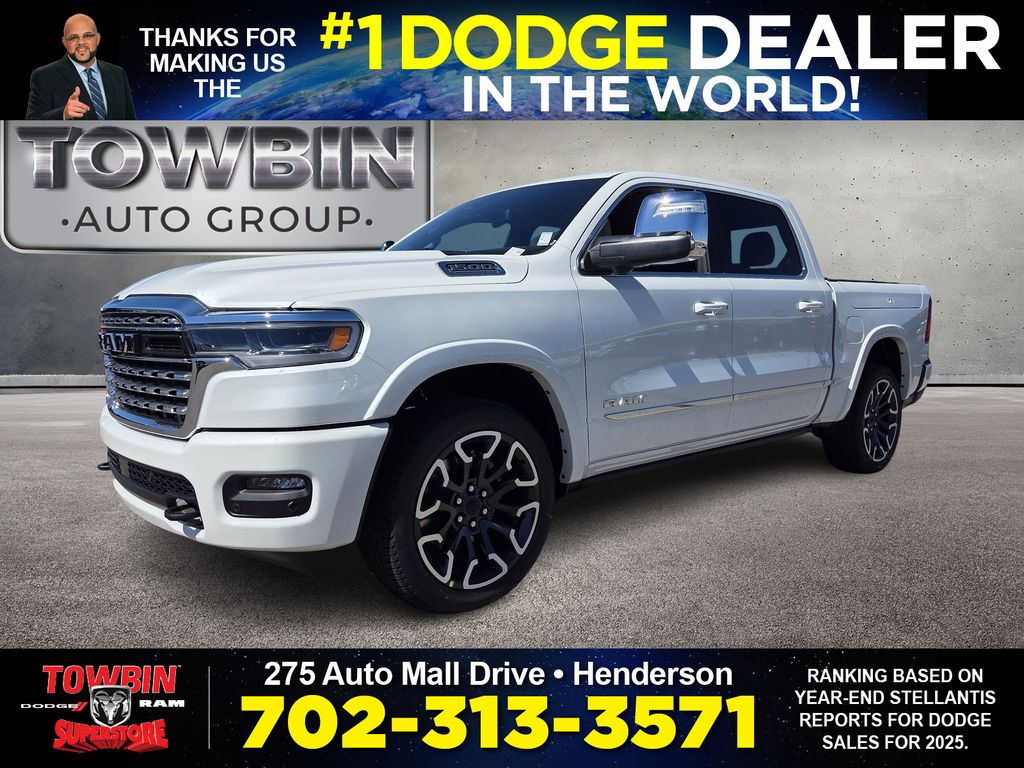 2026 Ram 1500 Limited Ivory White Tri-Coat PearlcoatWelcome to Towbin Dodge, #1 Dodge dealer in the world! This isnt just any used car- it has been handpicked and thoroughly inspected to meet the high standards we are known for, From everyday budget options to SRT and Luxury models, weve got something for every lifestyle and price point. At Towbin we make used car buying easy, affordable, and exciting.4WD 8-Speed Automatic 3.0L I6For your understanding: Sale Price includes guaranteed factory rebates for Nevada residents on vehicle purchase, not leases. Some residency restrictions do apply. Please inquire with a sales representative about your residency pricing and discounts and any additional rebates or incentives that you may qualify for. Final selling price does not include tax, tag, title, and $699 doc fee. Dealer retains all factory rebates and incentives. Final Selling Price may include pricing adjustments due to market demand. Please inquire with a sales representative for these specific models. The factory rebates may not be available on this vehicle if you elect to take advantage of a Special Alternative APR or Special Lease program. While great effort is made to ensure the accuracy of the information on this site, errors may occur so please verify information with a customer service rep. Prices and payments are subject to change based on manufacturer incentives. To verify 100% accuracy of pricing please call us at (702) 558-3800 or by visiting us at the dealership in person. Price includes: $3500 - 2026 National Retail Bonus Cash . Exp. 04/30/2026