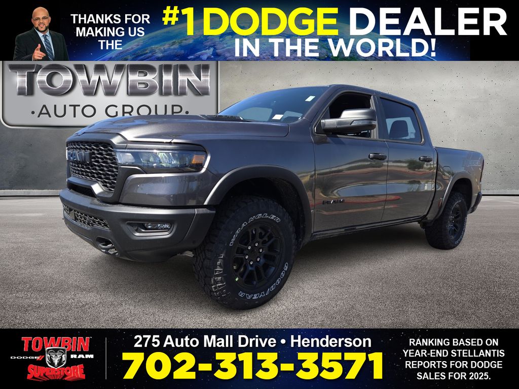 2026 Ram 1500 Rebel Granite Crystal Metallic ClearcoatGo Big and Go Bold with Towbin Ram Trucks! Quality Never Goes Out of Style. When Ram Trucks took inspiration from the world’s best, we found ourselves among them. If your looking for a Ram Dealer near you, come check out our extensive selection of New Ram Trucks at Towbin Dodge Ram, located conveniently in the Valley Auto Mall.4WD 8-Speed Automatic 3.0L I6Thanks for checking out this great vehicle. When looking to buy pre-owned, why not buy from the #1 Dodge dealer in Nevada? Give us a call or come see why everyone drives out saying, I got a great deal at Towbin Dodge! Price includes: $3500 - 2026 National Retail Bonus Cash . Exp. 04/30/2026 $750 - 2026 West BC Spring Boost Retail Bonus Cash . Exp. 04/30/2026