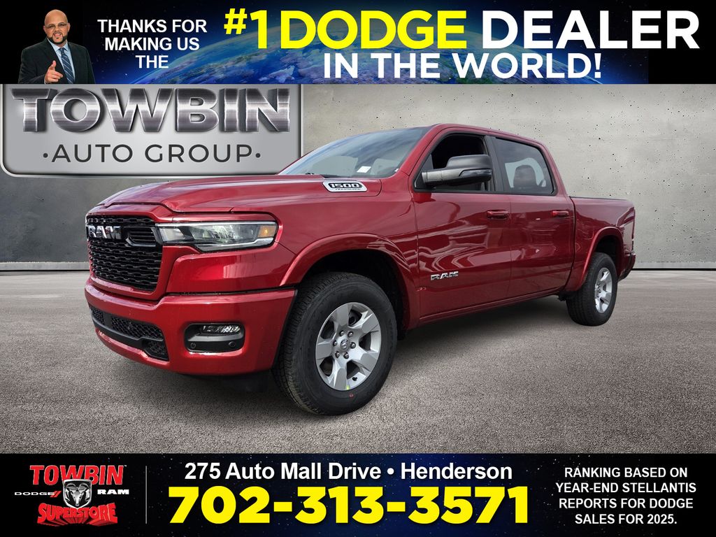 2026 Ram 1500 Big Horn/Lone Star Molten Red PearlcoatGo Big and Go Bold with Towbin Ram Trucks! Quality Never Goes Out of Style. When Ram Trucks took inspiration from the world’s best, we found ourselves among them. If your looking for a Ram Dealer near you, come check out our extensive selection of New Ram Trucks at Towbin Dodge Ram, located conveniently in the Valley Auto Mall.RWD 8-Speed Automatic 3.0L I6Thanks for checking out this great vehicle. When looking to buy pre-owned, why not buy from the #1 Dodge dealer in Nevada? Give us a call or come see why everyone drives out saying, I got a great deal at Towbin Dodge! Price includes: $3500 - 2026 National Retail Bonus Cash . Exp. 04/30/2026 $750 - 2026 West BC Bonus Cash . Exp. 04/30/2026