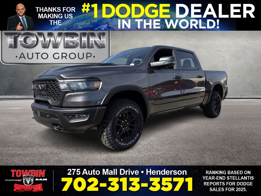 2026 Ram 1500 Rebel Granite Crystal Metallic ClearcoatWelcome to Towbin Dodge, #1 Dodge dealer in the world! This isnt just any used car- it has been handpicked and thoroughly inspected to meet the high standards we are known for, From everyday budget options to SRT and Luxury models, weve got something for every lifestyle and price point. At Towbin we make used car buying easy, affordable, and exciting.4WD 8-Speed Automatic 3.0L I6For your understanding: Sale Price includes guaranteed factory rebates for Nevada residents on vehicle purchase, not leases. Some residency restrictions do apply. Please inquire with a sales representative about your residency pricing and discounts and any additional rebates or incentives that you may qualify for. Final selling price does not include tax, tag, title, and $699 doc fee. Dealer retains all factory rebates and incentives. Final Selling Price may include pricing adjustments due to market demand. Please inquire with a sales representative for these specific models. The factory rebates may not be available on this vehicle if you elect to take advantage of a Special Alternative APR or Special Lease program. While great effort is made to ensure the accuracy of the information on this site, errors may occur so please verify information with a customer service rep. Prices and payments are subject to change based on manufacturer incentives. To verify 100% accuracy of pricing please call us at (702) 558-3800 or by visiting us at the dealership in person. Price includes: $3500 - 2026 National Retail Bonus Cash . Exp. 04/30/2026 $750 - 2026 West BC Spring Boost Retail Bonus Cash . Exp. 04/30/2026
