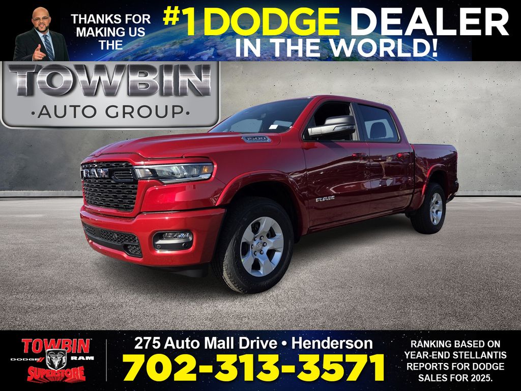 2026 Ram 1500 Big Horn/Lone Star Molten Red PearlcoatGo Big and Go Bold with Towbin Ram Trucks! Quality Never Goes Out of Style. When Ram Trucks took inspiration from the world’s best, we found ourselves among them. If your looking for a Ram Dealer near you, come check out our extensive selection of New Ram Trucks at Towbin Dodge Ram, located conveniently in the Valley Auto Mall.RWD 8-Speed Automatic 3.0L I6Thanks for checking out this great vehicle. When looking to buy pre-owned, why not buy from the #1 Dodge dealer in Nevada? Give us a call or come see why everyone drives out saying, I got a great deal at Towbin Dodge! Price includes: $3500 - 2026 National Retail Bonus Cash . Exp. 04/30/2026 $750 - 2026 West BC Bonus Cash . Exp. 04/30/2026