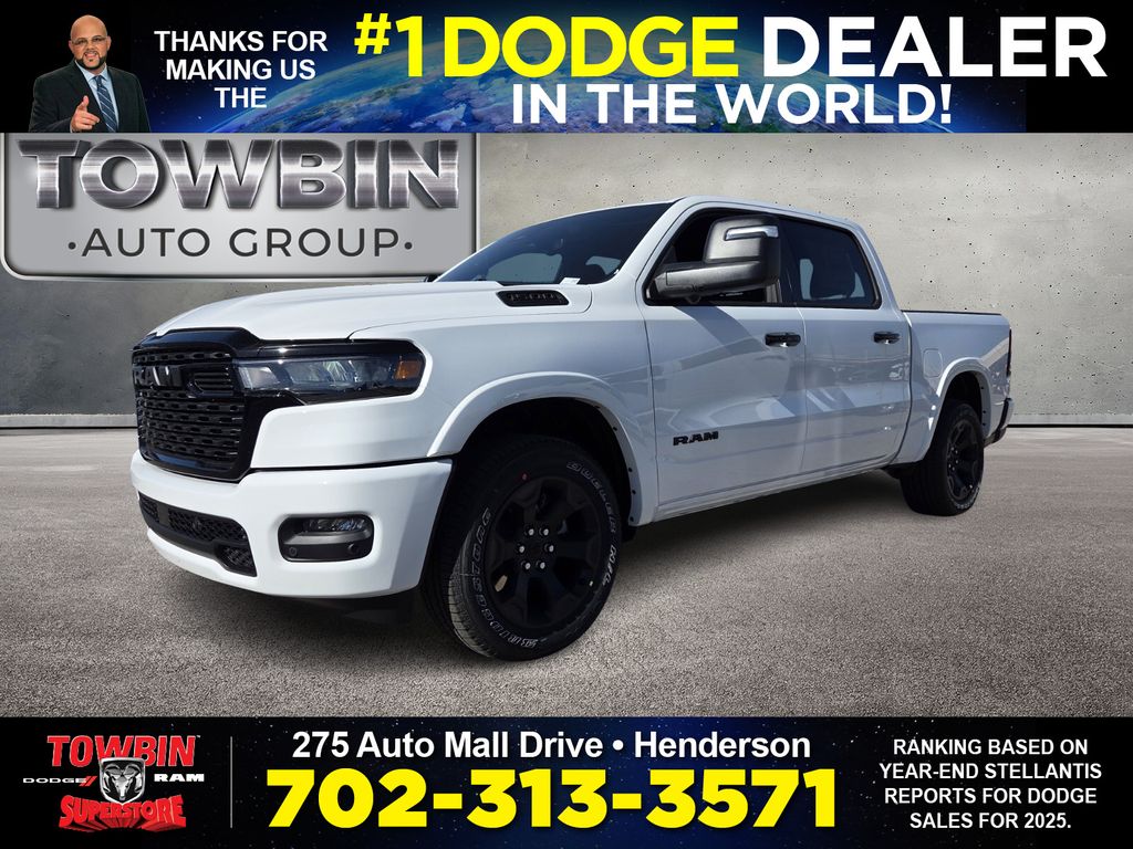 2026 Ram 1500 Big Horn/Lone Star Bright White ClearcoatWelcome to Towbin Dodge, #1 Dodge dealer in the world! This isnt just any used car- it has been handpicked and thoroughly inspected to meet the high standards we are known for, From everyday budget options to SRT and Luxury models, weve got something for every lifestyle and price point. At Towbin we make used car buying easy, affordable, and exciting.4WD 8-Speed Automatic 3.0L I6For your understanding: Sale Price includes guaranteed factory rebates for Nevada residents on vehicle purchase, not leases. Some residency restrictions do apply. Please inquire with a sales representative about your residency pricing and discounts and any additional rebates or incentives that you may qualify for. Final selling price does not include tax, tag, title, and $699 doc fee. Dealer retains all factory rebates and incentives. Final Selling Price may include pricing adjustments due to market demand. Please inquire with a sales representative for these specific models. The factory rebates may not be available on this vehicle if you elect to take advantage of a Special Alternative APR or Special Lease program. While great effort is made to ensure the accuracy of the information on this site, errors may occur so please verify information with a customer service rep. Prices and payments are subject to change based on manufacturer incentives. To verify 100% accuracy of pricing please call us at (702) 558-3800 or by visiting us at the dealership in person. Price includes: $3500 - 2026 National Retail Bonus Cash . Exp. 04/30/2026 $750 - 2026 West BC Bonus Cash . Exp. 04/30/2026
