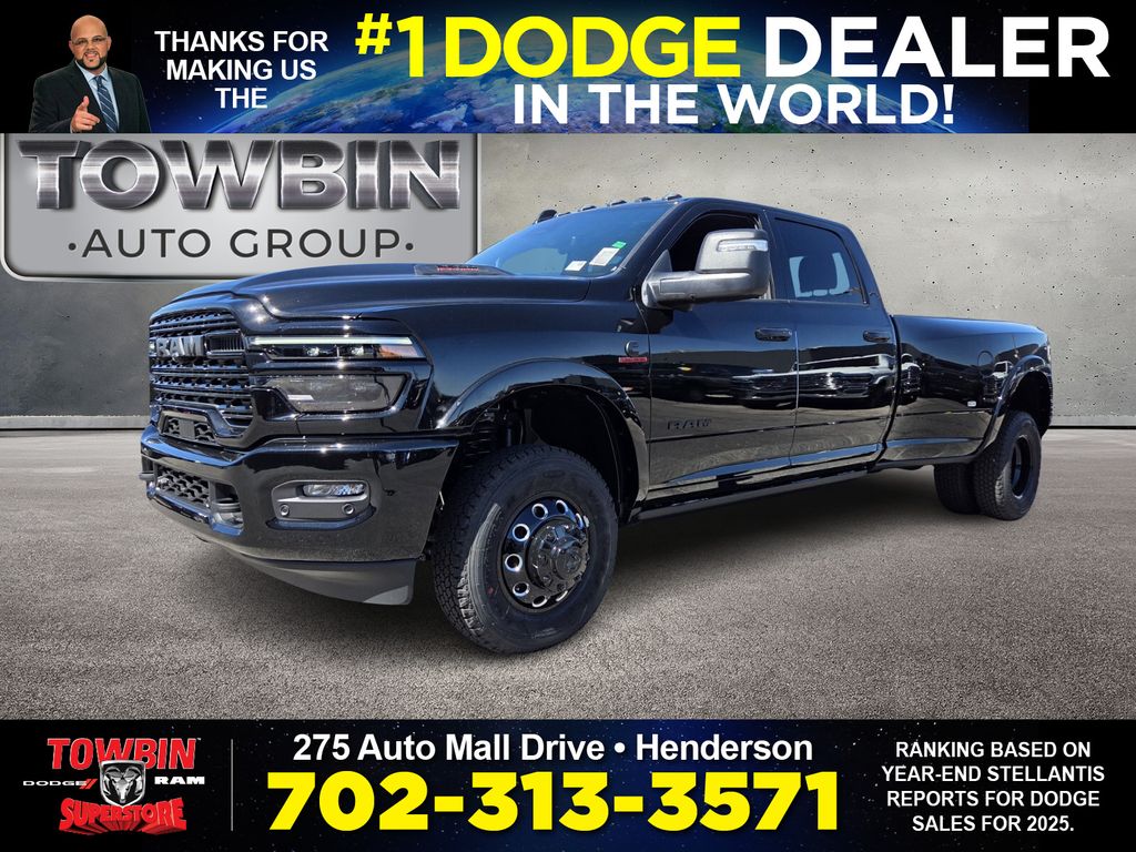 2026 Ram 3500 Limited Diamond Black Crystal PearlcoatGo Big and Go Bold with Towbin Ram Trucks! Quality Never Goes Out of Style. When Ram Trucks took inspiration from the world’s best, we found ourselves among them. If your looking for a Ram Dealer near you, come check out our extensive selection of New Ram Trucks at Towbin Dodge Ram, located conveniently in the Valley Auto Mall.4WD 8-Speed Automatic 6.7L I6Thanks for checking out this great vehicle. When looking to buy pre-owned, why not buy from the #1 Dodge dealer in Nevada? Give us a call or come see why everyone drives out saying, I got a great deal at Towbin Dodge! Price includes: $1000 - 2026 National Bonus Cash . Exp. 04/30/2026