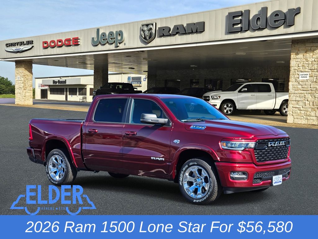 Factory MSRP: $64,830 $8,250 off MSRP!$5,114 below Invoice!Delmonico Red Pearlcoat 2026 Ram 1500 Big Horn/Lone Star HEMI 5.7L V8 Multi Displacement VVT eTorque 16/20 City/Highway MPG 4WD 8-Speed AutomaticWelcome to Elder Chrysler Dodge Jeep Ram, where our attitude is the difference! Family-owned and -operated since its inception over three decades ago, our Dodge and Ram dealership in Athens, TX, believes that every one of our customers should be treated like a member of the Elder family. When you visit our Texas Ram dealer, you’re always going to run into an Elder who will greet you with a smiling face and help you find exactly what you’re looking for. We make a substantial effort to reach out and converse with every person who enters our dealership looking for sales or service. Quite simply, we don’t believe in having hooks or gimmicks to drive sales. We understand that if we provide you with superior treatment the first time you visit us, you’ll be sure to come back to us again in the future. We treat you like family and we always welcome our family members with open arms. Our business is driven by you — our loyal customers — and the way that Elder Chrysler Dodge Jeep Ram treats the people who walk through our doors is what helps us forge long-lasting relationships over time.More Reasons to Buy from Elder Chrysler Dodge Jeep Ram Our dealership is not part of a major automotive group and isn’t held back by corporate restrictions, so our customers can enjoy no-pressure negotiations and transparent sales when they shop with us. We not only carry all your favorite Chrysler, Dodge, Ram and Jeep models, but we also have an extensive commercial truck and van inventory that could help you build your fleet! Elder Chrysler Dodge Jeep Ram is a proud recipient of the Customer First Award for Excellence. Our Athens, TX, dealer is among a group of elite dealerships that have proven to provide the best sales and service experience. We are very involved in our East Texas community, supporting schools, events and local organizations. We sponsor the local chapters of the FFA (Future Farmers of America), give a $1,000 scholarship out to deserving students and we spend close to $100,000 a year on community outreach. Price includes: $1000 - 2026 Southwest BC State of Texas Regional Bonus Cash . Exp. 03/02/2026 $3500 - 2026 National Retail Consumer Cash . Exp. 03/02/2026 $750 - 2026 Southwest BC Retail Bonus Cash . Exp. 03/02/2026
