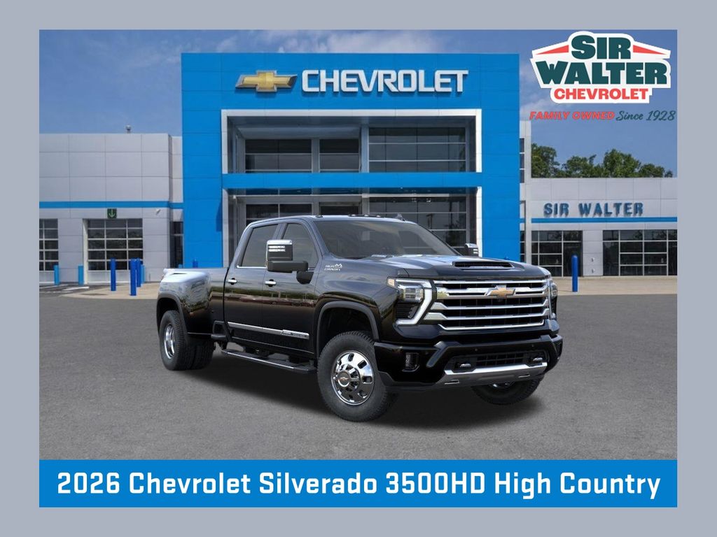 This 2026 Chevrolet Silverado 3500HD High Country is a new vehicle with (delivery miles only). It is equipped with 10-Speed Automatic 4WD and runs on Diesel. The vehicle has a Black exterior and Jet Black interior. This specific vehicle (VIN: 1GC4KVEY0TF271990) is currently available for sale in Raleigh, North Carolina (ZIP 27526-5988), NC and is offered by Sir Walter Chevrolet for immediate purchase.