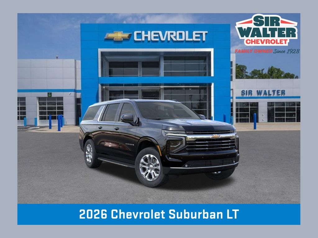 This 2026 Chevrolet Suburban LT is a new vehicle with 177 mi (delivery miles only). It is equipped with 10-Speed Automatic with Overdrive RWD and runs on Gasoline. The vehicle has a Black exterior and Jet Black interior. This specific vehicle (VIN: 1GNS5CKD4TR147411) is currently available for sale in Raleigh, North Carolina (ZIP 27526-5988), NC and is offered by Sir Walter Chevrolet for immediate purchase.