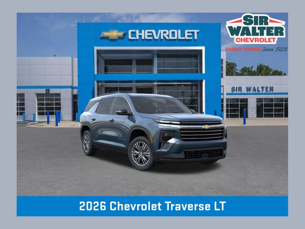 This 2026 Chevrolet Traverse LT is a new vehicle with (delivery miles only). It is equipped with 8-Speed Automatic FWD and runs on Gasoline. The vehicle has a Lakeshore Blue Metallic exterior and Lt Jet Black interior. This specific vehicle (VIN: 1GNERGKS8TJ329649) is currently available for sale in Raleigh, North Carolina (ZIP 27526-5988), NC and is offered by Sir Walter Chevrolet for immediate purchase.