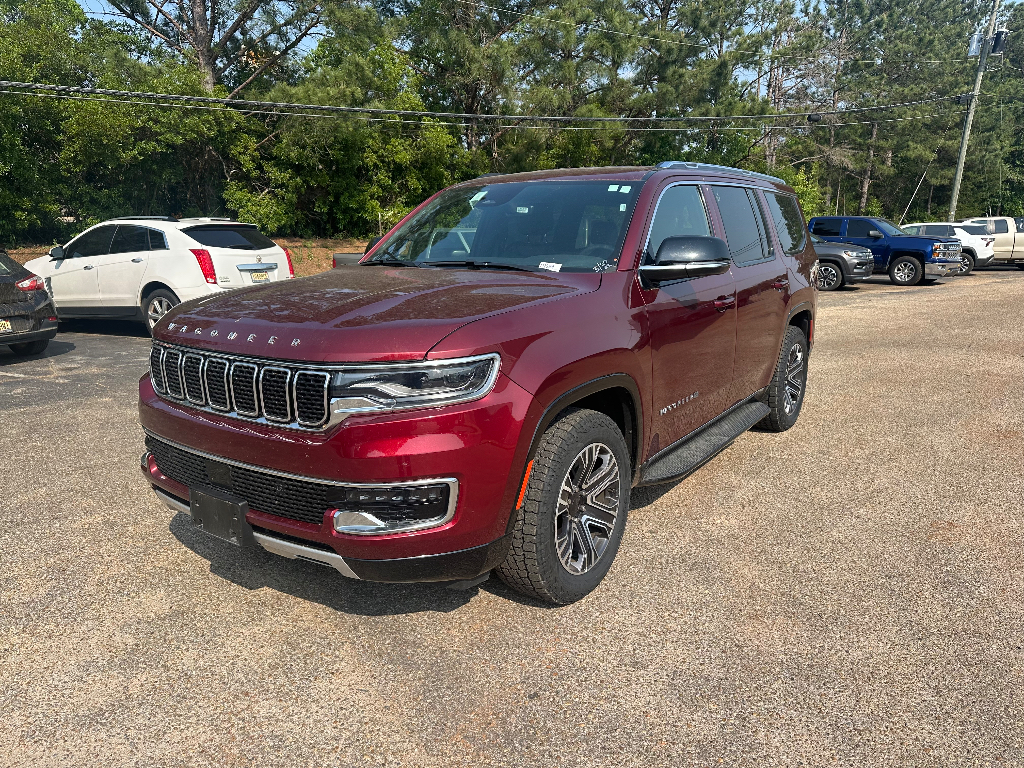 This 2024 Jeep Wagoneer Series II is a used vehicle with 63,149 mi. It is equipped with 8-speed automatic 4WD and runs on Gasoline. The vehicle has a Velvet Red Pearlcoat exterior and Global Black interior. This specific vehicle (VIN: 1C4SJVBP3RS125380) is currently available for sale in Greenville, Alabama (ZIP 36037), Butler County and is offered by Greenville Chevrolet for immediate purchase.