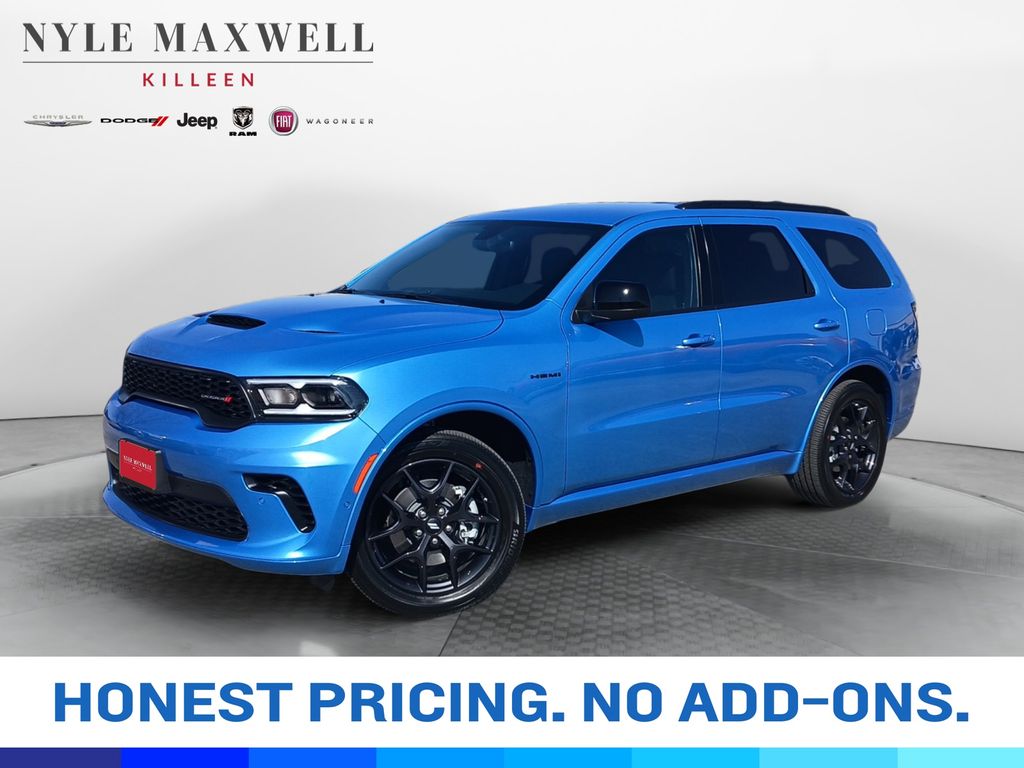 ***CALL 254-200-3900*** **Manufacturer’s Rebate subject to residency restrictions. Any customer not meeting the residency restrictions will receive a dealer discount in the same amount of the manufacturer’s rebate.Priced below KBB Fair Purchase Price!B5 Blue 2026 Dodge Durango GT HEMI V8 GT HEMI V8 AWD HEMI 5.7L V8 Multi Displacement VVT AWD. Blacktop Package (Black Roof Rails, Gloss Black Badges, Integrated Roof Rail Crossbars, and Satin Black Dodge Tail Lamp Badge), Quick Order Package 22S GT, AWD, 3.09 Rear Axle Ratio, 3rd row seats: split-bench, 4-Wheel Disc Brakes, 9 Speakers, ABS brakes, Air Conditioning, Alloy wheels, AM/FM radio: SiriusXM w/360L, Apple CarPlay/Android Auto, Auto-dimming Rear-View mirror, Auto-leveling suspension, Automatic temperature control, Brake assist, Bumpers: body-color, Cloth Bucket Seats with Shift Insert, Compass, Delay-off headlights, Driver door bin, Driver vanity mirror, Dual front impact airbags, Dual front side impact airbags, Electronic Stability Control, Emergency communication system: Dodge Connect, Exterior Mirrors with Heating Element, Four wheel independent suspension, Front anti-roll bar, Front Bucket Seats, Front Center Armrest w/Storage, Front dual zone A/C, Front License Plate Bracket, Front reading lights, Fully automatic headlights, Garage door transmitter, Gloss Black Exterior Mirrors, Heated door mirrors, Heated front seats, Heated steering wheel, Illuminated entry, Knee airbag, Leather steering wheel, Low tire pressure warning, Navigation System, Occupant sensing airbag, Outside temperature display, Overhead airbag, Overhead console, Panic alarm, ParkView Rear Back-Up Camera, Passenger door bin, Passenger vanity mirror, Power door mirrors, Power driver seat, Power Liftgate, Power steering, Power windows, Radio data system, Radio: Uconnect 5 Nav with 10.1" Display, Rain sensing wipers, Rear air conditioning, Rear anti-roll bar, Rear Load Leveling Suspension, Rear reading lights, Rear seat center armrest, Rear window defroster, Rear window wiper, Red Accent Stitching, Remote keyless entry, Security system, Speed control, Speed-sensing steering, Speed-Sensitive Wipers, Split folding rear seat, Spoiler, Sport steering wheel, Steering wheel mounted audio controls, Tachometer, Telescoping steering wheel, Tilt steering wheel, Traction control, Trip computer, Variably intermittent wipers, Voltmeter, Wheels: 20" x 8" Black Noise Split 5-Spoke, and Wheels: 20" x 8" Satin Carbon Split 5-Spoke Get peace of mind and protection with our new Maxwell Forever protection. It protects your vehicle for as long as you own it and is included for FREE!