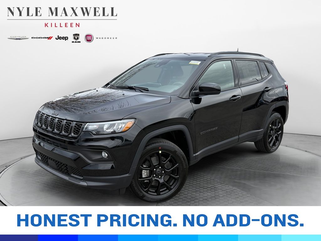 ***CALL 254-200-3900*** **Manufacturer’s Rebate subject to residency restrictions. Any customer not meeting the residency restrictions will receive a dealer discount in the same amount of the manufacturer’s rebate.23/31 City/Highway MPGdiamond black crystal pearlcoat 2026 Jeep Compass Latitude Latitude 4WD 2.0L I4 DOHC 4WD. Quick Order Package 29N Altitude (10.1" Touchscreen Display, Altitude Special Edition, Black Day Light Opening Moldings, Gloss Black Surround/Neutral Gray Rings, Neutral Gray Exterior Badging, Piano Black Interior Accents, Sliding Sun Visors with Illuminated Mirrors, and Wheels: 18" x 7" Gloss Black Painted Aluminum), 4WD, 17" x 7" Aluminum Wheels, 3.73 Final Drive Ratio, 4-Wheel Disc Brakes, 4G LTE Wi-Fi Hot Spot, 6 Speakers, ABS brakes, Air Conditioning, AM/FM radio: SiriusXM, Auto High-beam Headlights, Automatic temperature control, Bluetooth Handsfree Phone and Audio, Brake assist, Bumpers: body-color, Compass, Delay-off headlights, Driver door bin, Driver vanity mirror, Dual front impact airbags, Dual front side impact airbags, Electronic Stability Control, Emergency communication system: SiriusXM Guardian, Four wheel independent suspension, Front anti-roll bar, Front Bucket Seats, Front Center Armrest w/Storage, Front fog lights, Front License Plate Bracket, Front reading lights, Fully automatic headlights, Global Telematics Box Module, Heated door mirrors, Heated front seats, Heated steering wheel, Illuminated entry, Knee airbag, Leather Shift Knob, Leather steering wheel, Low tire pressure warning, Occupant sensing airbag, Outside temperature display, Overhead airbag, Overhead console, Panic alarm, ParkView Rear Back-Up Camera, Passenger door bin, Passenger vanity mirror, Power door mirrors, Power steering, Power windows, Premium audio system: UConnect 5, Premium Cloth/Vinyl Bucket Seats, Radio: Uconnect 5 with 8.4" Display, Rear anti-roll bar, Rear seat center armrest, Rear window defroster, Rear window wiper, Remote keyless entry, Security system, SiriusXM Satellite Radio, Speed control, Split folding rear seat, Spoiler, Steering wheel mounted audio controls, Tachometer, Telescoping steering wheel, Tilt steering wheel, Traction control, Trip computer, and Variably intermittent wipers Get peace of mind and protection with our new Maxwell Forever protection. It protects your vehicle for as long as you own it and is included for FREE! Price includes: $1000 - 2026 National Retail Bonus Cash . Exp. 03/02/2026 $750 - 2026 Southwest BC Bonus Cash . Exp. 03/02/2026
