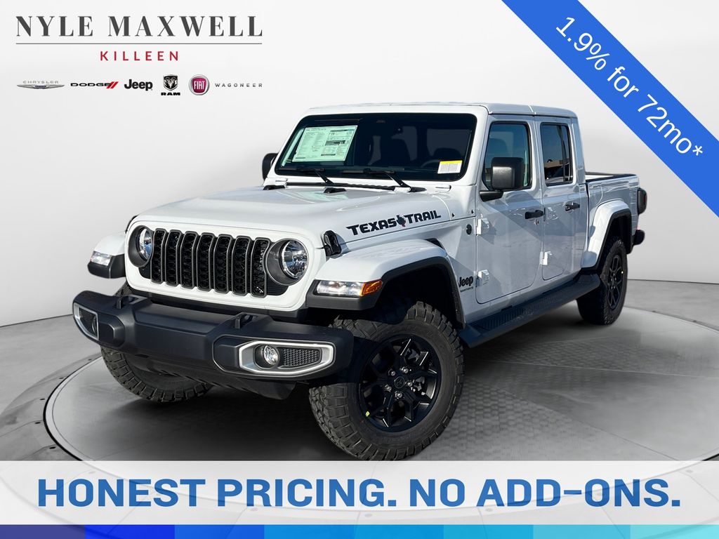 Discover the ultimate adventure-ready ride with the 2026 Jeep Gladiator Texas Trail. This rugged, capable, and stylishly equipped truck is the perfect companion for those who crave the open road and the great outdoors.Boasting an impressive array of premium features, the Gladiator Texas Trail is designed to elevate your driving experience. Key highlights include:- Convenience Group- Quick Order Package 24J Texas Trail- Body Color 3-Piece Hard Top- 12.3" Touchscreen Display- Alexa Built-in- Apple CarPlay/Android Auto- Heated Steering Wheel- Premium McKinley Trimmed Seats- Power Adjust 8-Way Driver Seat- Power Adjust 8-Way Front Passenger Seat- Heated Front Seats- Wheels: 17" x 7.5" Painted Black**1.9% for 72 months is a stand alone offer with approved financing through Stellantis Financial. Expires 3-2-26. Not compatible with other offersPowered by a robust 3.6L V6 24V VVT engine paired with an 8-speed automatic transmission and 4WD, this Gladiator delivers exceptional performance and off-road capability. With a city fuel efficiency of 17 MPG and a highway rating of 22 MPG, you can conquer any terrain while enjoying impressive fuel economy.Designed to turn heads, the Gladiator Texas Trail boasts a striking white exterior and a host of rugged styling cues, including the body-color 3-piece hard top, 2-piece fender flares, and Texas Trail tailgate and hood decals. The interior is equally impressive, with premium McKinley-trimmed seats, a heated steering wheel, and a 12.3" touchscreen display that keeps you connected and in control.Whether you're tackling the toughest trails or cruising down the highway, the 2026 Jeep Gladiator Texas Trail is the ultimate adventure companion. Experience the perfect blend of capability, comfort, and style – visit our showroom today and let us put you behind the wheel of this remarkable vehicle.
