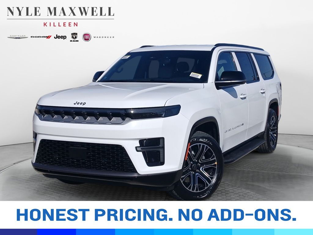 ***CALL 254-200-3900*** **Manufacturer’s Rebate subject to residency restrictions. Any customer not meeting the residency restrictions will receive a dealer discount in the same amount of the manufacturer’s rebate.Bright White Clearcoat 2026 Jeep Grand Wagoneer L Base 4WD 3.0L I6 Quick Order Package 29E Grand Wagoneer, 118 MPH Maximum Speed Calibration, 3.55 Rear Axle Ratio, 3rd row seats: bench, 4-Wheel Disc Brakes, 9 Speakers, ABS brakes, Air Conditioning, Alloy wheels, AM/FM radio: SiriusXM with 360L, Anti-whiplash front head restraints, Apple CarPlay/Android Auto, Audio memory, Auto Adjust in Reverse Exterior Mirrors, Auto High-beam Headlights, Auto-dimming door mirrors, Auto-Dimming Exterior Driver Mirror, Auto-dimming Rear-View mirror, Auto-leveling suspension, Automatic temperature control, Black Exterior Accents, Brake assist, Bumpers: body-color, Compass, Delay-off headlights, Driver door bin, Driver vanity mirror, Driver's Seat Mounted Armrest, Dual front impact airbags, Dual front side impact airbags, Electronic Stability Control, Emergency communication system: Jeep Connect, Exterior Mirrors Approach Lamps, Exterior Mirrors with Memory, Exterior Mirrors with Supplemental Signals, Exterior Parking Camera Rear, Four wheel independent suspension, Front anti-roll bar, Front Bucket Seats, Front Center Armrest w/Storage, Front dual zone A/C, Front fog lights, Front reading lights, Fully automatic headlights, Garage door transmitter, Heated door mirrors, Heated Exterior Mirrors, Heated front seats, Heated steering wheel, Illuminated entry, Knee airbag, Low tire pressure warning, Memory seat, Navigation System, Normal Duty Suspension, Occupant sensing airbag, Outside temperature display, Overhead airbag, Overhead console, Panic alarm, Passenger door bin, Passenger seat mounted armrest, Passenger vanity mirror, Power door mirrors, Power driver seat, Power Liftgate, Power passenger seat, Power steering, Power windows, Radio data system, Radio: Uconnect 5 Nav with 12" Display, Rain sensing wipers, Rear air conditioning, Rear anti-roll bar, Rear reading lights, Rear seat center armrest, Rear window defroster, Rear window wiper, Reclining 3rd row seat, Remote keyless entry, Security system, Speed control, Speed-sensing steering, Speed-Sensitive Wipers, Split folding rear seat, Steering wheel memory, Steering wheel mounted audio controls, Tachometer, Telescoping steering wheel, Tilt steering wheel, Traction control, Trip computer, Turn signal indicator mirrors, Variably intermittent wipers, Ventilated front seats, Voltmeter, and Wheels: 20" x 9.0" Machine Face Painted Aluminum Get peace of mind and protection with our new Maxwell Forever protection. It protects your vehicle for as long as you own it and is included for FREE! Price includes: $1000 - 2026 National Stellantis Loyalty Bonus Cash . Exp. 04/30/2026