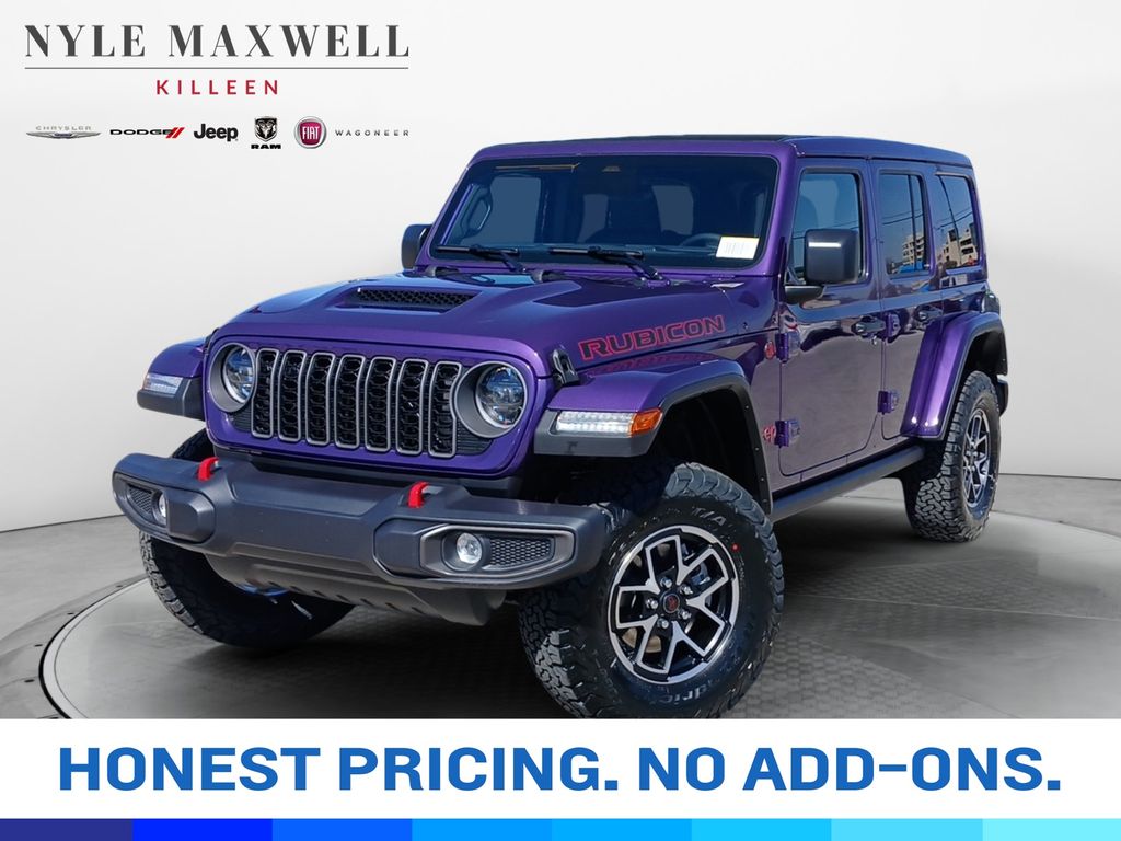This 2026 Jeep Wrangler Rubicon is a new vehicle with 16 mi (delivery miles only). It is equipped with 8-Speed Automatic 4WD and runs on Gasoline. The vehicle has a Reign exterior and Black interior. This specific vehicle (VIN: 1C4PJXFG9TW237449) is currently available for sale in Killeen, Texas (ZIP 76543), Bell County and is offered by Nyle Maxwell CDJR Killeen for immediate purchase.
