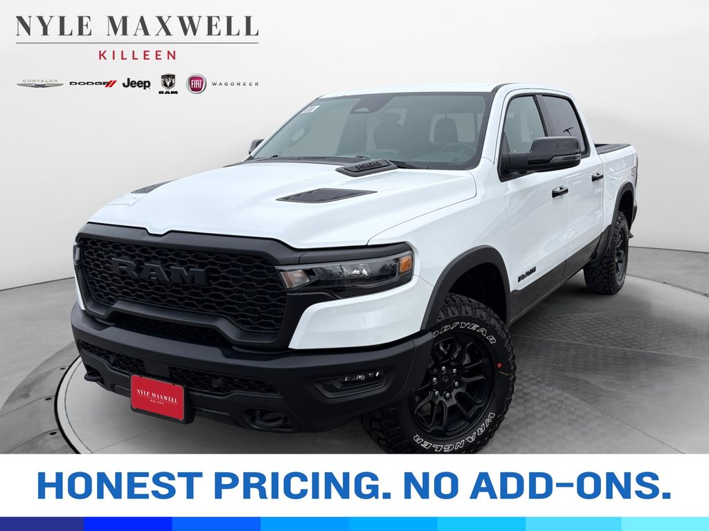 ***CALL 254-200-3900*** **Manufacturer’s Rebate subject to residency restrictions. Any customer not meeting the residency restrictions will receive a dealer discount in the same amount of the manufacturer’s rebate.Bright White Clearcoat 2026 Ram 1500 Rebel Rebel 4WD 3.0L I6 Bed Utility Group (Exterior 115V AC Outlet, MOPAR 4 Adjustable Cargo Tie-Down Hooks, and MOPAR Spray in Bedliner), G/T Package (4 Way Front Headrests, Bucket Seats, Driver Seat Memory, Floor Console, Front Seat Back Map Pockets, G/T Decal, G/T Exhaust, GT Interior Theme, Heated Front Seats, Heated Second Row Seats, Heated Steering Wheel, Leather Wrapped Shift Knob, Leather-Wrapped Steering Wheel, Leather/Vinyl Bucket Seats, MOPAR Bright Pedal Kit, Performance Pages, Power 4-Way Driver Lumbar Adjust, Power 4-Way Passenger Lumbar Adjust, Power Adjust 8-Way Driver Seat, Power Adjust 8-Way Front Passenger Seat, Rear 60/40 Folding Split Recline Seat, Steering Wheel Mounted Shift Control, Under Seat Lighting, and Ventilated Front Seats), Quick Order Package 21W Rebel, Rebel Level 2 Equipment Group (115V Auxiliary Rear Power Outlet, 14.4" Touchscreen Display, 2-Door Passive Entry, Front Door Locks, 4G LTE Wi-Fi Hot Spot, Accent Color Door Handles, Accent Color Premium Power Mirrors, Accent Color Tailgate Handle, Apple CarPlay, Auto Power-Folding Mirrors, Auto-Dimming Exterior Driver Mirror, Black Painted Exterior Mirrors Caps, Connected Travel and Traffic Services, Connectivity - US/Canada, Convex Wide-Angle Exterior Mirror Insert, Disassociated Touchscreen Display, Dual Wireless Charging Pad, Exterior Mirrors Approach Lamps, Exterior Mirrors Courtesy Lamps, Exterior Mirrors with Heating Element, Exterior Mirrors with Memory, Exterior Mirrors with Supplemental Signals, Front Passenger Interactive Display, Global Telematics Box Module, Google Android Auto, GPS Antenna Input, GPS Navigation, Harman/Kardon 19 Speaker Premium Sound, HD Radio, Integrated Center Stack Radio, Integrated Voice Command with Bluetooth, Media Hub with 2 Charge Only USBs, Off-Road Information Pages, Power 2-Way Passenger Lumbar Adjust, Power Adjustable Pedals with Memory, Power Tailgate, Proximity Approach/Departure Lamps, Radio: Uconnect 5 Nav with 14.4" Display, Radio/Driver Seat/Mirrors/Pedals Memory, Rain Sensitive Windshield Wipers, Rear Window Defroster, Security Alarm, SiriusXM Radio Service, SiriusXM with 360L, Smartphone as a Key Capable, and USB Host Flip), 10 Speakers, 3.92 Rear Axle Ratio, 4-Wheel Disc Brakes, ABS brakes, Active Noise Control System, Air Conditioning, Alloy wheels, AM/FM radio: SiriusXM with 360L, Apple CarPlay/Android Auto, Auto High-beam Headlights, Auto-dimming Rear-View mirror, Automatic temperature control, Black Exterior Mirrors, Brake assist, Cloth/Vinyl Bucket Seats, Compass, Delay-off headlights, Driver door bin, Driver vanity mirror, Dual front impact airbags, Dual front side impact airbags, Electronic Stability Control, Front anti-roll bar, Front Bucket Seats, Front Center Armrest w/Storage, Front dual zone A/C, Front fog lights, Front License Plate Bracket, Front reading lights, Front wheel independent suspension, Full Length Upgraded Floor Console, Fully automatic headlights, Garage door transmitter, Heated door mirrors, Heated front seats, Heated steering wheel, Illuminated entry, Leather steering wheel, Low tire pressure warning, Manual Folding Exterior Mirrors, Navigation System, Occupant sensing airbag, Outside temperature display, Overhead airbag, Overhead console, Panic alarm, ParkView Rear Back-Up Camera, Passenger door bin, Passenger vanity mirror, Power 2-Way Driver Lumbar Adjust, Power door mirrors, Power driver seat, Power steering, Power windows, Radio data system, Radio: Uconnect 5 Navigation with 12.0" Display, RamBox Cargo Price includes: $1000 - 2026 National Bonus Cash . Exp. 03/02/2026 $1000 - 2026 Southwest BC State of Texas Regional Bonus Cash . Exp. 03/02/2026 $3500 - 2026 National Retail Consumer Cash . Exp. 03/02/2026