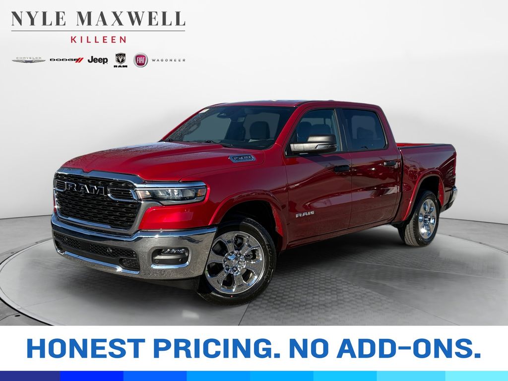 ***CALL 254-200-3900*** **Manufacturer’s Rebate subject to residency restrictions. Any customer not meeting the residency restrictions will receive a dealer discount in the same amount of the manufacturer’s rebate.Priced below KBB Fair Purchase Price!Molten Red Pearlcoat 2026 Ram 1500 Big Horn/Lone Star Big Horn/Lone Star RWD 3.0L I6 Big Horn Level 1 Equipment Group (115V Auxiliary Power Outlet, 2nd Row in Floor Storage Bins, 3 Rear Seat Head Restraints, 4 Way Front Headrests, 400W Inverter, Auto Power-Folding Mirrors, Auto-Dimming Exterior Driver Mirror, Auto-Dimming Rear-View Mirror, Black Exterior Mirrors, Black Premium Power Mirrors, Body Color Fender Flares, Bucket Seats, Center Console Parts Module, Convex Wide-Angle Exterior Mirror Insert, Deluxe Cloth Bucket Seats, Exterior Mirrors Courtesy Lamps, Exterior Mirrors with Heating Element, Exterior Mirrors with Supplemental Signals, Front Seat Back Map Pockets, Full Length Floor Console, Glove Box Lamp, Heated Front Seats, Heated Steering Wheel, Leather Wrapped Steering Wheel, Manual Adjust 4-Way Front Passenger Seat, Power 2-Way Driver Lumbar Adjust, Power Adjust 8-Way Driver Seat, Power Adjustable Pedals, Rear 60/40 Folding Seat, Rear Center Armrest, Rear Dome with on/Off Switch Lamp, Rear Power Sliding Window, Rear Window Defroster, SiriusXM Radio Service, SiriusXM Satellite Radio, Steering Wheel Mounted Audio Controls, Sun Visors with Illuminated Vanity Mirrors, and Universal Garage Door Opener), Quick Order Package 21R Lone Star (Lone Star Badge), 3.21 Rear Axle Ratio, 4-Wheel Disc Brakes, 48V Belt Starter Generator, 4G LTE Wi-Fi Hot Spot, 6 Speakers, ABS brakes, Air Conditioning, Alloy wheels, AM/FM radio, Apple CarPlay, Apple CarPlay/Android Auto, Auto High-beam Headlights, Brake assist, Bumpers: chrome, Cloth Bucket Seats, Compass, Connectivity - US/Canada, Delay-off headlights, Driver door bin, Dual front impact airbags, Dual front side impact airbags, Electronic Stability Control, Exterior Parking Camera Rear, Front anti-roll bar, Front Bucket Seats, Front Center Armrest w/Storage, Front fog lights, Front License Plate Bracket, Front reading lights, Front wheel independent suspension, Fully automatic headlights, Global Telematics Box Module, Google Android Auto, GPS Antenna Input, Heated door mirrors, Illuminated entry, Integrated Center Stack Radio, Integrated Voice Command with Bluetooth, Low tire pressure warning, Manual Adjust 4-Way Driver Seat, Manual Folding Exterior Mirrors, Occupant sensing airbag, Outside temperature display, Overhead airbag, Overhead console, Panic alarm, Passenger door bin, Passenger vanity mirror, Power door mirrors, Power steering, Power windows, Radio data system, Radio: Uconnect 5 W with 8.4" Display, RAM Grille Badge - Chrome, Rear anti-roll bar, Rear step bumper, Remote keyless entry, Speed control, Supplier Part Tracking (J-1), Tachometer, Telescoping steering wheel, Tilt steering wheel, Traction control, Trip computer, USB Host Flip, Variably intermittent wipers, Voltmeter, Wheels: 18" x 8" Cast-Aluminum Painted, and Wheels: 20" x 9" Aluminum Chrome Clad Get peace of mind and protection with our new Maxwell Forever protection. It protects your vehicle for as long as you own it and is included for FREE! Price includes: $1000 - 2026 Southwest BC State of Texas Regional Bonus Cash . Exp. 03/02/2026 $3500 - 2026 National Retail Consumer Cash . Exp. 03/02/2026 $750 - 2026 Southwest BC Retail Bonus Cash . Exp. 03/02/2026