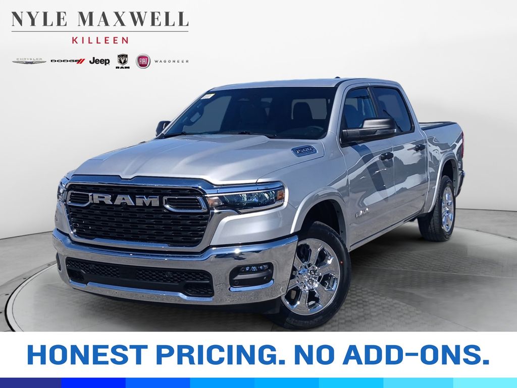***CALL 254-200-3900*** **Manufacturer’s Rebate subject to residency restrictions. Any customer not meeting the residency restrictions will receive a dealer discount in the same amount of the manufacturer’s rebate.Silver Zynith 2026 Ram 1500 Big Horn/Lone Star Big Horn/Lone Star RWD 3.0L I6 Big Horn Level 1 Equipment Group (115V Auxiliary Power Outlet, 2nd Row in Floor Storage Bins, 3 Rear Seat Head Restraints, 4 Way Front Headrests, 400W Inverter, Auto Power-Folding Mirrors, Auto-Dimming Exterior Driver Mirror, Auto-Dimming Rear-View Mirror, Black Exterior Mirrors, Black Premium Power Mirrors, Body Color Fender Flares, Bucket Seats, Center Console Parts Module, Convex Wide-Angle Exterior Mirror Insert, Deluxe Cloth Bucket Seats, Exterior Mirrors Courtesy Lamps, Exterior Mirrors with Heating Element, Exterior Mirrors with Supplemental Signals, Front Seat Back Map Pockets, Full Length Floor Console, Glove Box Lamp, Heated Front Seats, Heated Steering Wheel, Leather Wrapped Steering Wheel, Manual Adjust 4-Way Front Passenger Seat, Power 2-Way Driver Lumbar Adjust, Power Adjust 8-Way Driver Seat, Power Adjustable Pedals, Rear 60/40 Folding Seat, Rear Center Armrest, Rear Dome with on/Off Switch Lamp, Rear Power Sliding Window, Rear Window Defroster, SiriusXM Radio Service, SiriusXM Satellite Radio, Steering Wheel Mounted Audio Controls, Sun Visors with Illuminated Vanity Mirrors, and Universal Garage Door Opener), Quick Order Package 21R Lone Star (Lone Star Badge), 3.21 Rear Axle Ratio, 4-Wheel Disc Brakes, 48V Belt Starter Generator, 4G LTE Wi-Fi Hot Spot, 6 Speakers, ABS brakes, Air Conditioning, Alloy wheels, AM/FM radio, Apple CarPlay, Apple CarPlay/Android Auto, Auto High-beam Headlights, Brake assist, Bumpers: chrome, Cloth Bucket Seats, Compass, Connectivity - US/Canada, Delay-off headlights, Driver door bin, Dual front impact airbags, Dual front side impact airbags, Electronic Stability Control, Exterior Parking Camera Rear, Front anti-roll bar, Front Bucket Seats, Front Center Armrest w/Storage, Front fog lights, Front License Plate Bracket, Front reading lights, Front wheel independent suspension, Fully automatic headlights, Global Telematics Box Module, Google Android Auto, GPS Antenna Input, Heated door mirrors, Illuminated entry, Integrated Center Stack Radio, Integrated Voice Command with Bluetooth, Low tire pressure warning, Manual Adjust 4-Way Driver Seat, Manual Folding Exterior Mirrors, Occupant sensing airbag, Outside temperature display, Overhead airbag, Overhead console, Panic alarm, Passenger door bin, Passenger vanity mirror, Power door mirrors, Power steering, Power windows, Radio data system, Radio: Uconnect 5 W with 8.4" Display, RAM Grille Badge - Chrome, Rear anti-roll bar, Rear step bumper, Remote keyless entry, Speed control, Supplier Part Tracking (J-1), Tachometer, Telescoping steering wheel, Tilt steering wheel, Traction control, Trip computer, USB Host Flip, Variably intermittent wipers, Voltmeter, Wheels: 18" x 8" Cast-Aluminum Painted, and Wheels: 20" x 9" Aluminum Chrome Clad Get peace of mind and protection with our new Maxwell Forever protection. It protects your vehicle for as long as you own it and is included for FREE! Price includes: $1000 - 2026 Southwest BC State of Texas Regional Bonus Cash . Exp. 03/02/2026 $3500 - 2026 National Retail Consumer Cash . Exp. 03/02/2026 $750 - 2026 Southwest BC Retail Bonus Cash . Exp. 03/02/2026