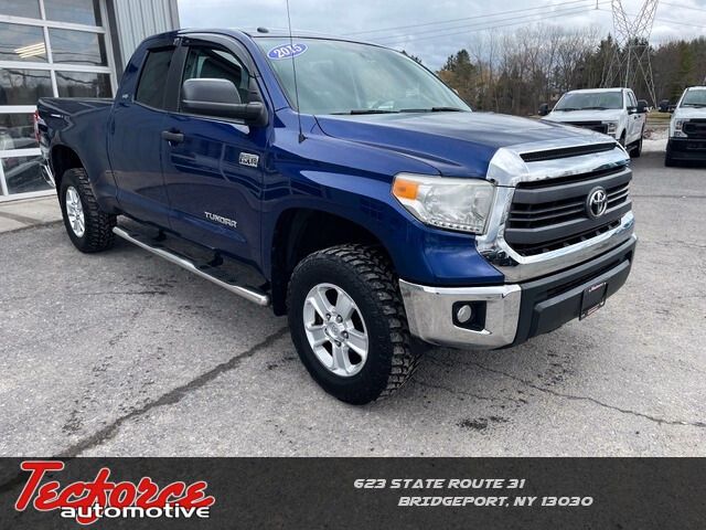 Discover the impressive capabilities and refined comfort of this 2015 Toyota Tundra SR5. With its powerful i-Force 5.7L V8 engine, 4-wheel drive, and a host of advanced features, this Tundra is ready to take on any task you throw its way.- Deck Rail System with 4 adjustable tie-down cleats- 18" x 8J 5-Spoke Aluminum Disc Wheels with P275/65R18 AS Michelin Tires- SR5 PackageEnjoy the convenience of the Entune Audio Display with AM/FM/HD radio, CD player, and SiriusXM Satellite Radio. Stay connected with the Remote Keyless Entry, Power Windows, and Speed Control. Safety is a top priority with features like Brake Assist, Electronic Stability Control, and Traction Control.Comfort and versatility are at the forefront, with a 3-Passenger Front Bench Seat, Sliding Rear Window with Privacy Glass, and Rear Under Seat Storage Tray. The Illuminated Entry System and Outside Temperature Display add to the premium experience.This Tundra's rugged good looks are complemented by the Blue Exterior Color and Clear Front Fog & Driving Lights. With its impressive capabilities and well-appointed interior, this 2015 Toyota Tundra SR5 is the perfect companion for your next adventure.Experience the power and refinement of this exceptional truck. Visit our showroom today and let us demonstrate how this Tundra can elevate your driving experience.Central New York's #1 Truck Source!
